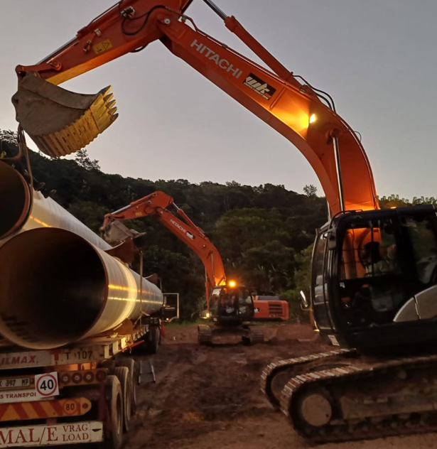 WKCSA services it’s project with a large fleet on internal plant. The fleet contains excavators, sideboom, mobile cranes, TLB’s, roller compactors, heavy duty transport plant, tractors and trailers and small plant and equipment.