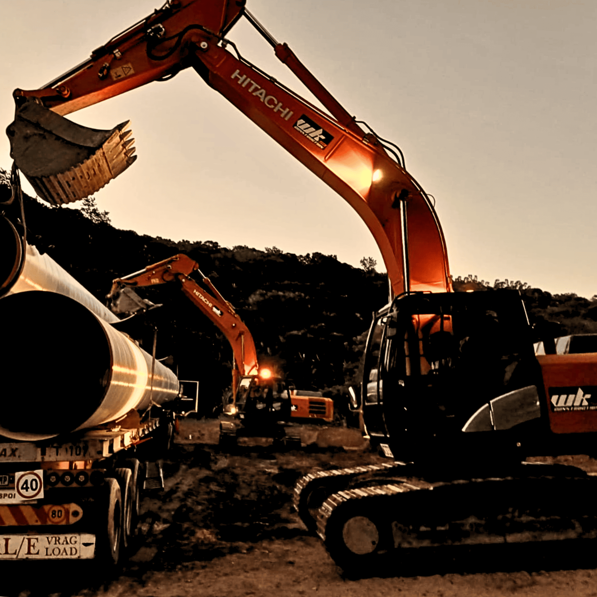 WKCSA services it’s projects with a large fleet of internally owned plant. The fleet contains excavators, sideboom, mobile cranes, TLB’s, roller compactors, heavy duty transport plant, tractors and trailers and small plant and equipment.